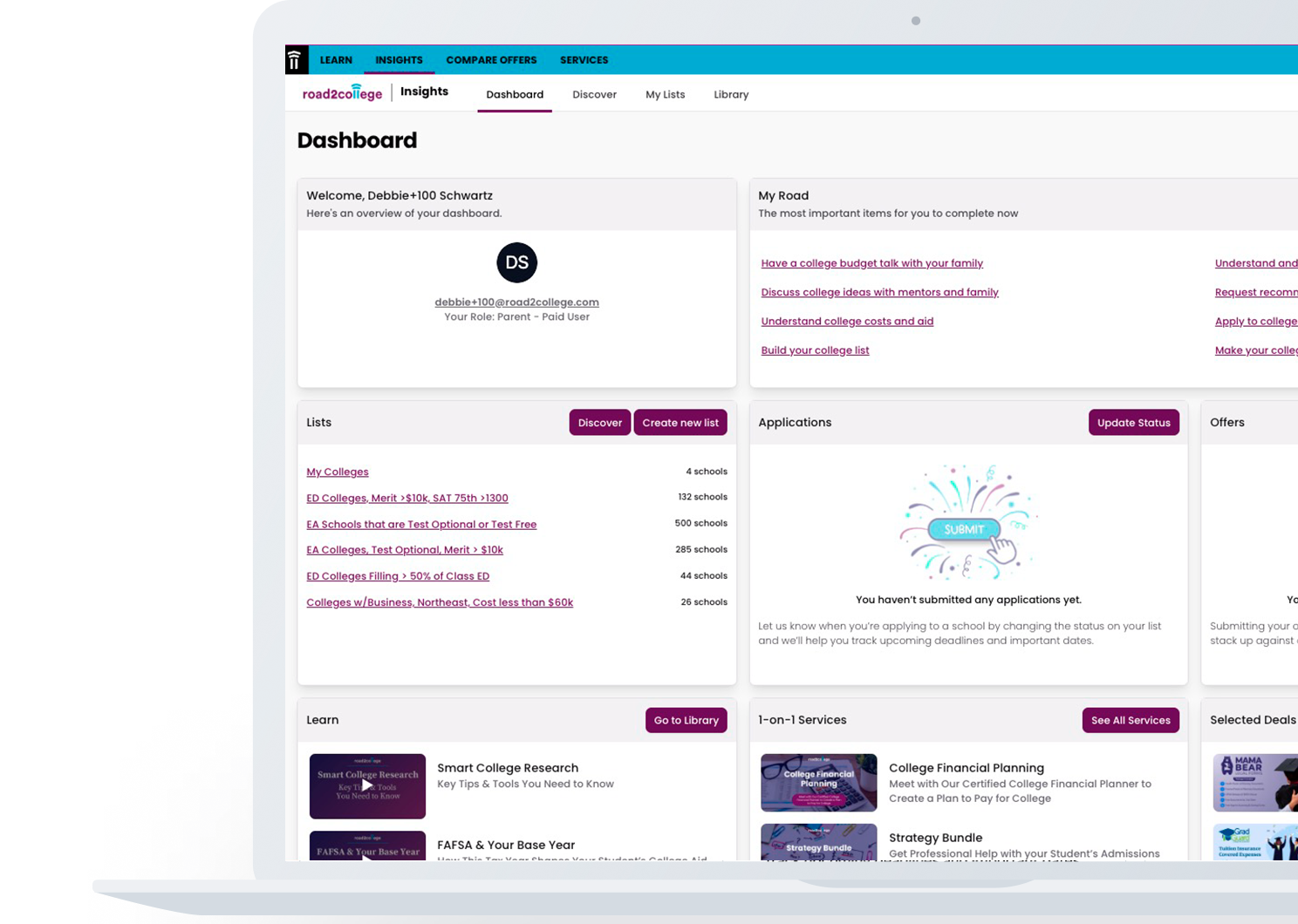 Get access to limited versions of our tools for college comparison, list building, and crowdsourced offers.